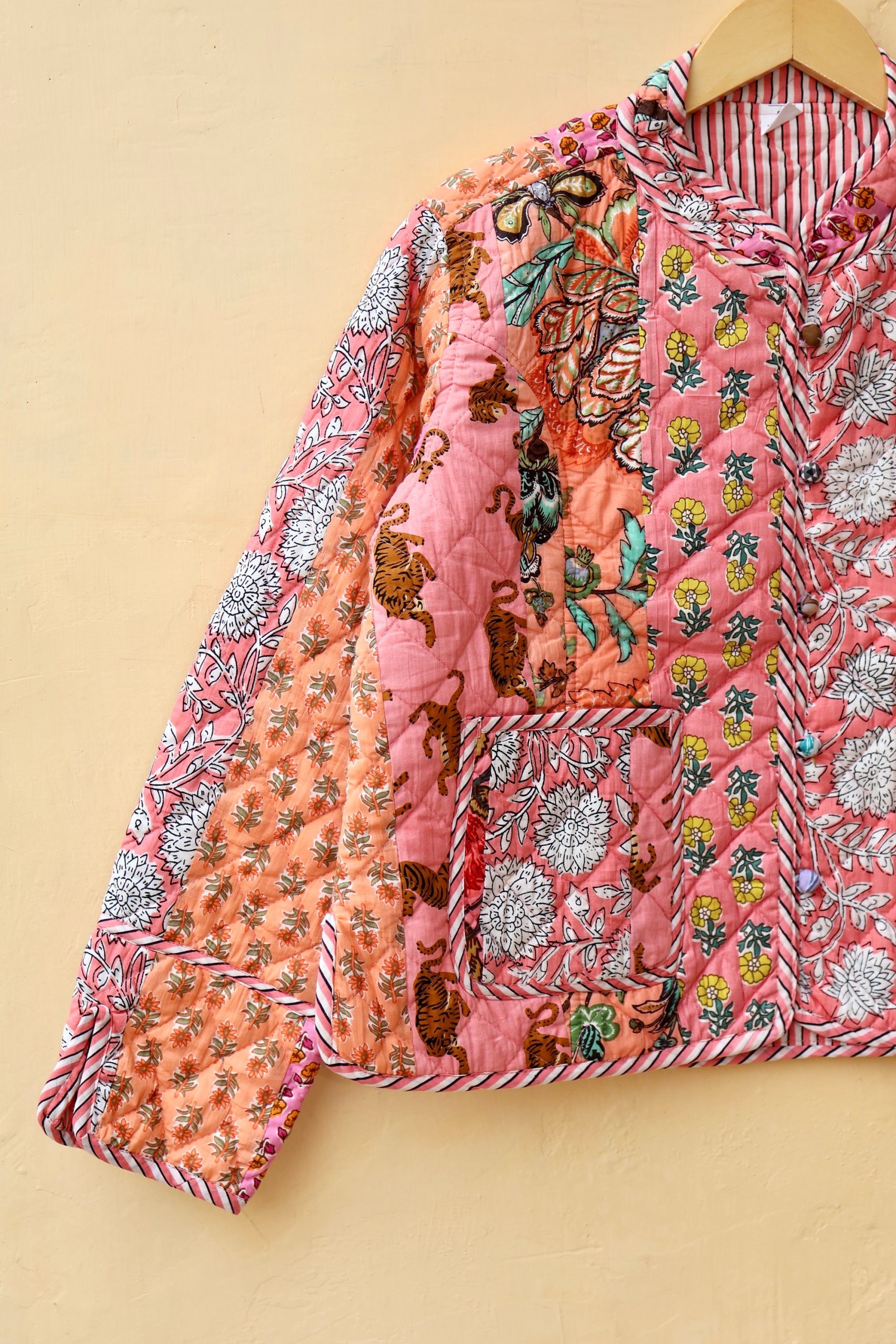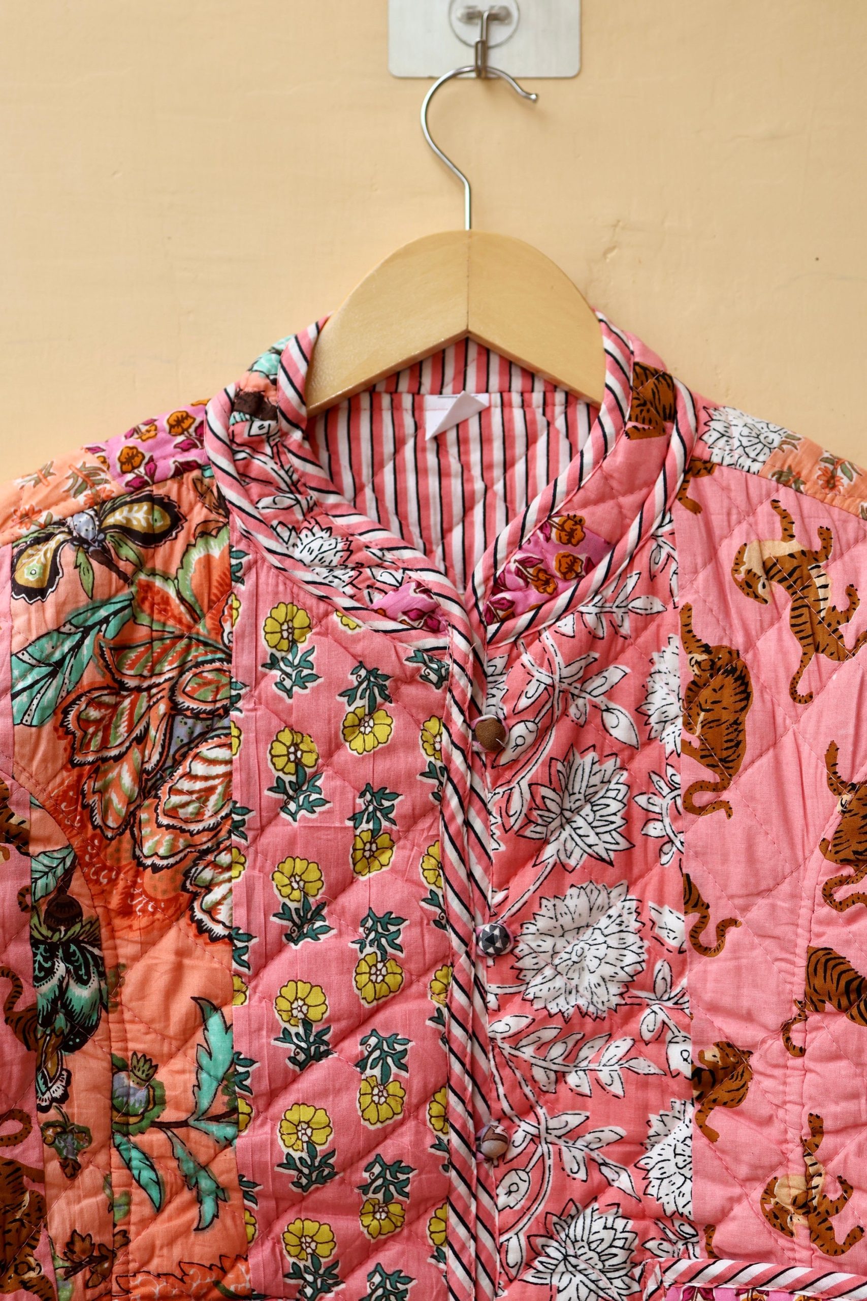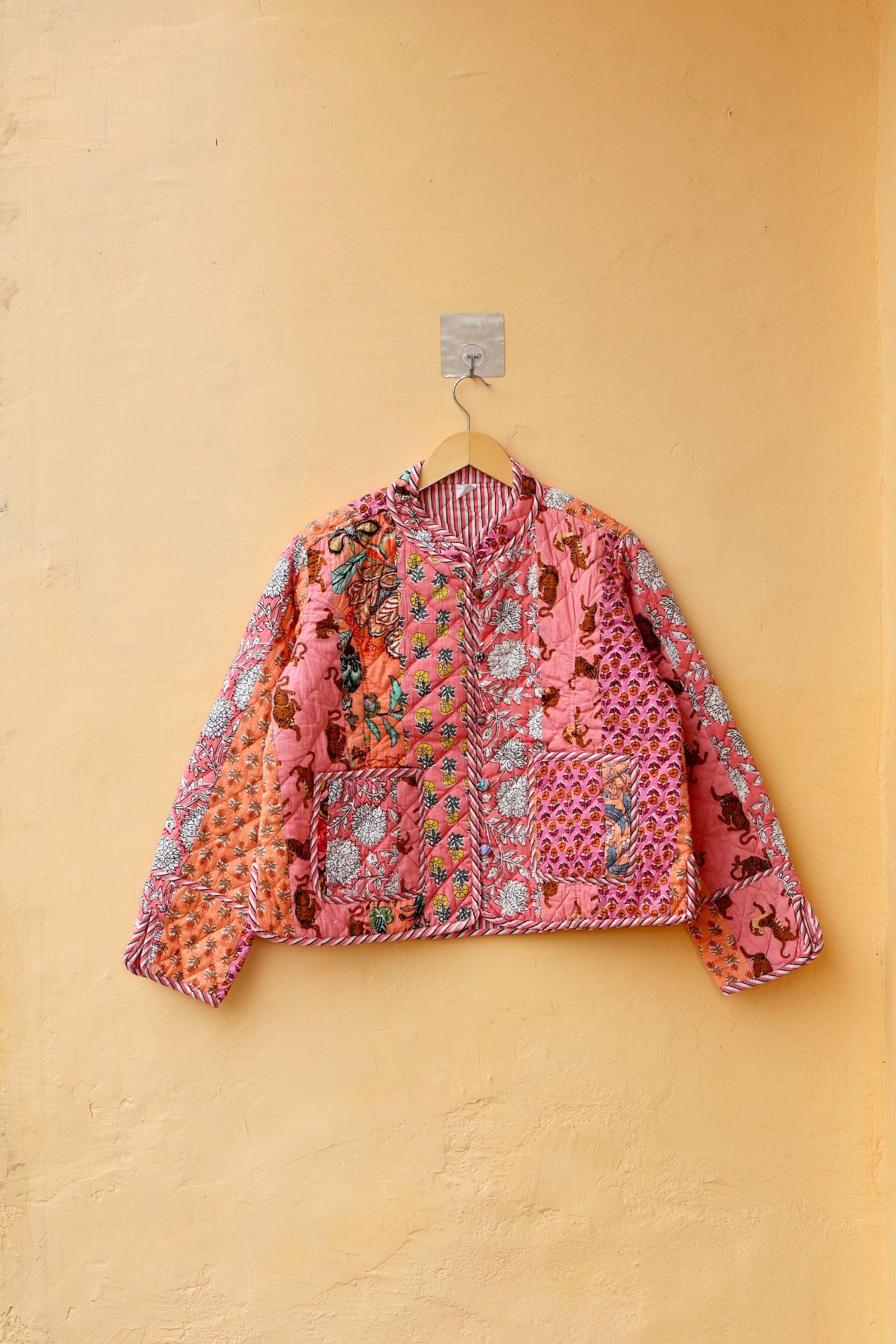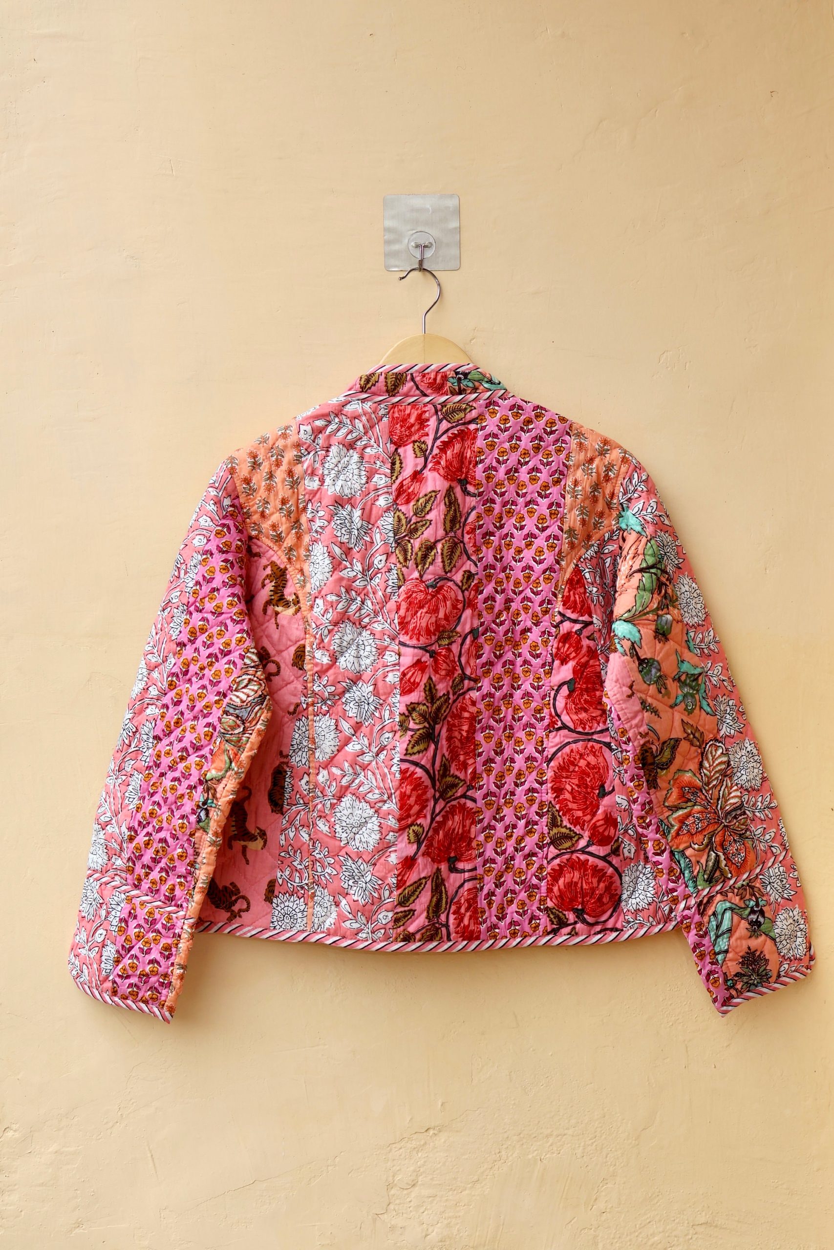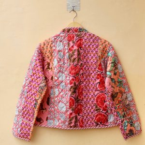 Indian Handmade Patchwork Cotton Quilted Jacket, Vintage Peach New Style Cotton Quilted Jacket, Reversible Women’s Boho Coat, Gift for Her